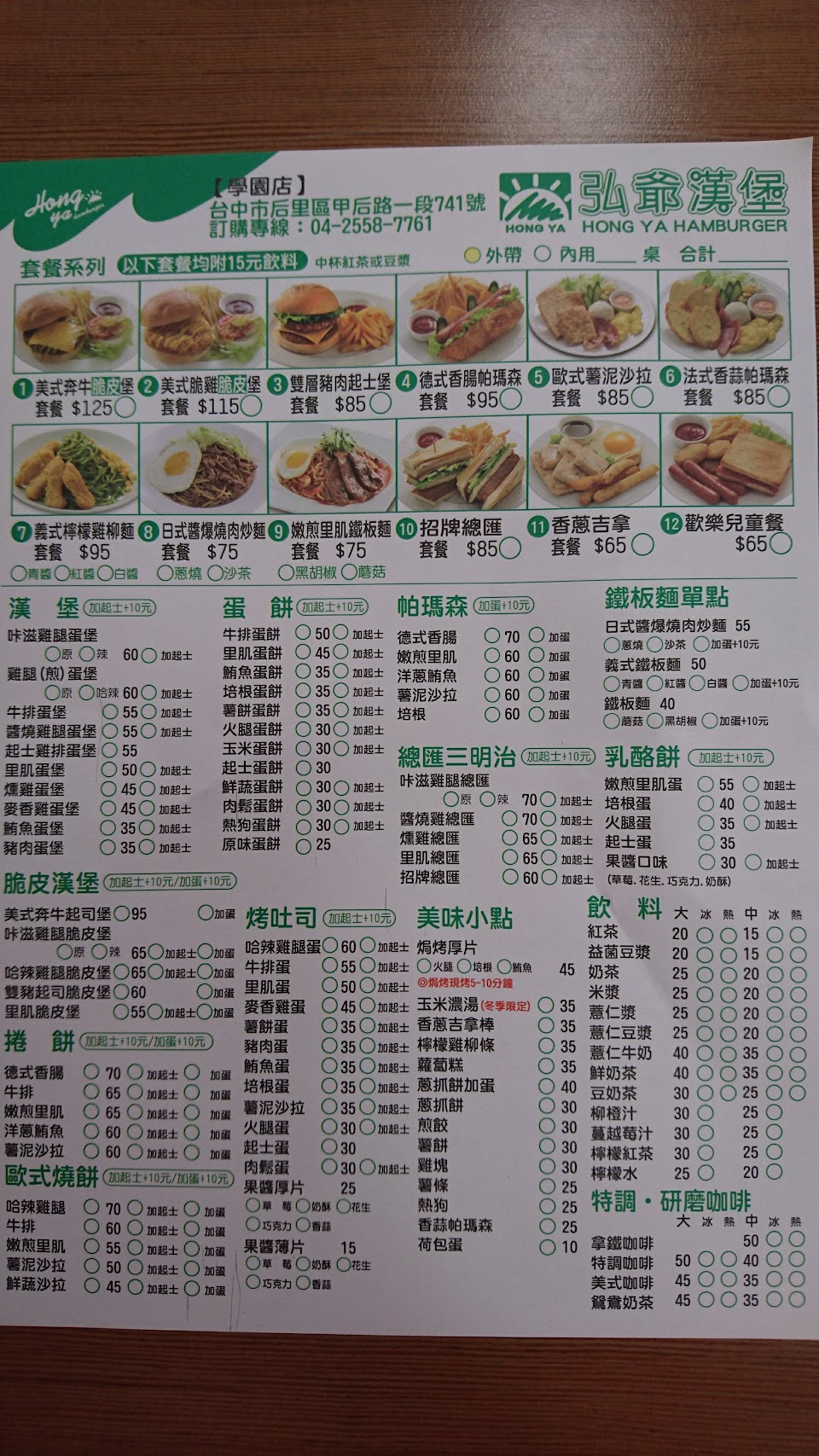 2024最新在地推薦餐廳的菜單_弘爺漢堡 (學園店)的菜單、圖片