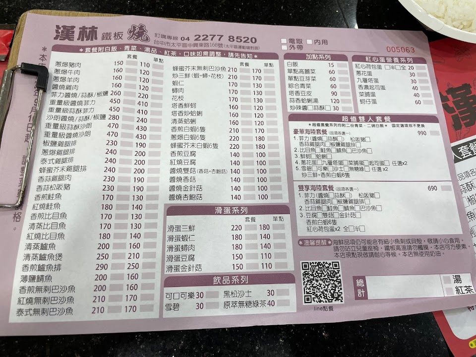 2024最新在地推薦餐廳的菜單_漢林鐵板燒中興東店的菜單、圖片