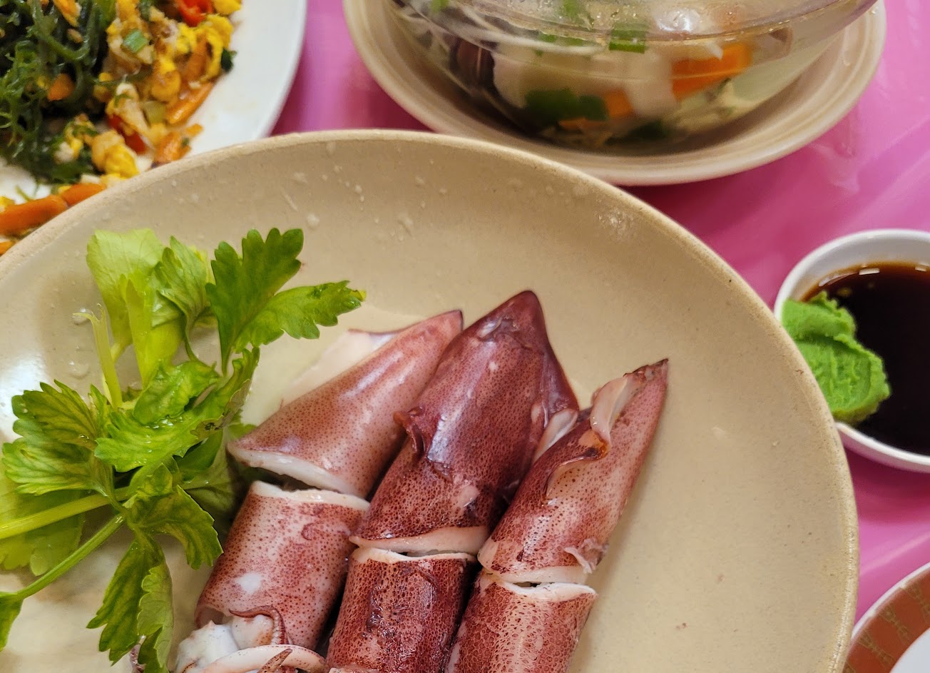 2人用餐。6只小角蝦/4只小卷/一份菜乾蛤蜊湯/1瓶啤酒,共900..份量少。建議點餐時要問清楚價格&詳細份量。