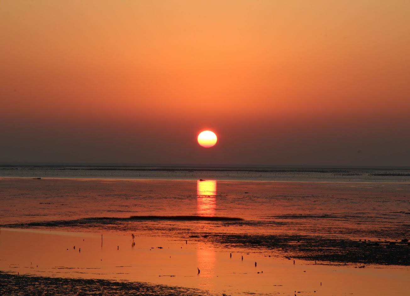 夕陽美潮間帶物種豐富,濕地屬泥質因附近有養殖牡蠣,泥巴中牡蠣殼很多,容易割到或刺到腳,入口處有沖洗水龍頭及廁所。