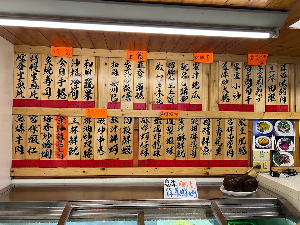 聞名很久一直沒有來吃過,剛好遇到公司聚餐因此辦在這邊,同事們點了鳳梨蝦球、紅燒羊肉爐、生魚片、炒水蓮、炙燒鮭魚壽司、白玉三寶、白斬玉米雞、馳名Q豬腳、酥炸蚵仔酥、椒鹽炸龍珠、金沙雞蛋豆腐,點了好幾道菜才發現都沒有點到什麼客家料理,再加點了一道薑絲炒大腸,很多道菜其實跟一般快炒店的菜吃起來是差不多的,羊肉爐一開始很害怕會有羊騷味,喝一口後發現還好沒有很明顯的羊騷味,炙燒鮭魚壽司很好吃,海鮮類的餐點都滿新鮮的,金沙雞蛋豆腐覺得有點過鹹,不確定是不是不小心沾到太多金沙(鹹蛋黃)的部分,但如果有配白飯吃就覺得剛好,薑絲炒大腸真的有按照顧客說的要酸一點,真的夠酸!白玉三寶是招牌,裡面有苦瓜、冬瓜、白菜下面是排骨肉,也蠻好吃的,可以推薦點,下次如果有機會再來會想多吃一些客家料理,服務人員不確定是因為我們太晚到的關係還是太晚才要開始用餐或是太晚才離開的關係,顯得有點不耐煩,但她也算是好心會提醒我們已經點很多道菜了,怕我們吃不完建議我們吃完真的不夠再加點,所以服務上分數也沒全扣到最低分,整體來說算是還不錯的地方,以後有機會會再來嘗試看看