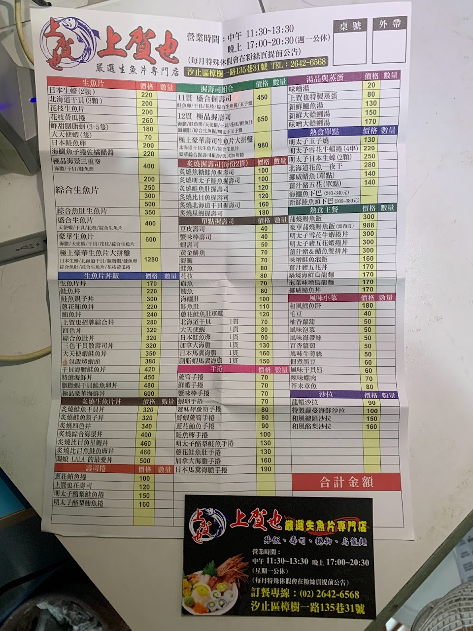 2024最新在地推薦餐廳的菜單_上賀也 嚴選生魚片專門店(日式料理)的菜單、圖片