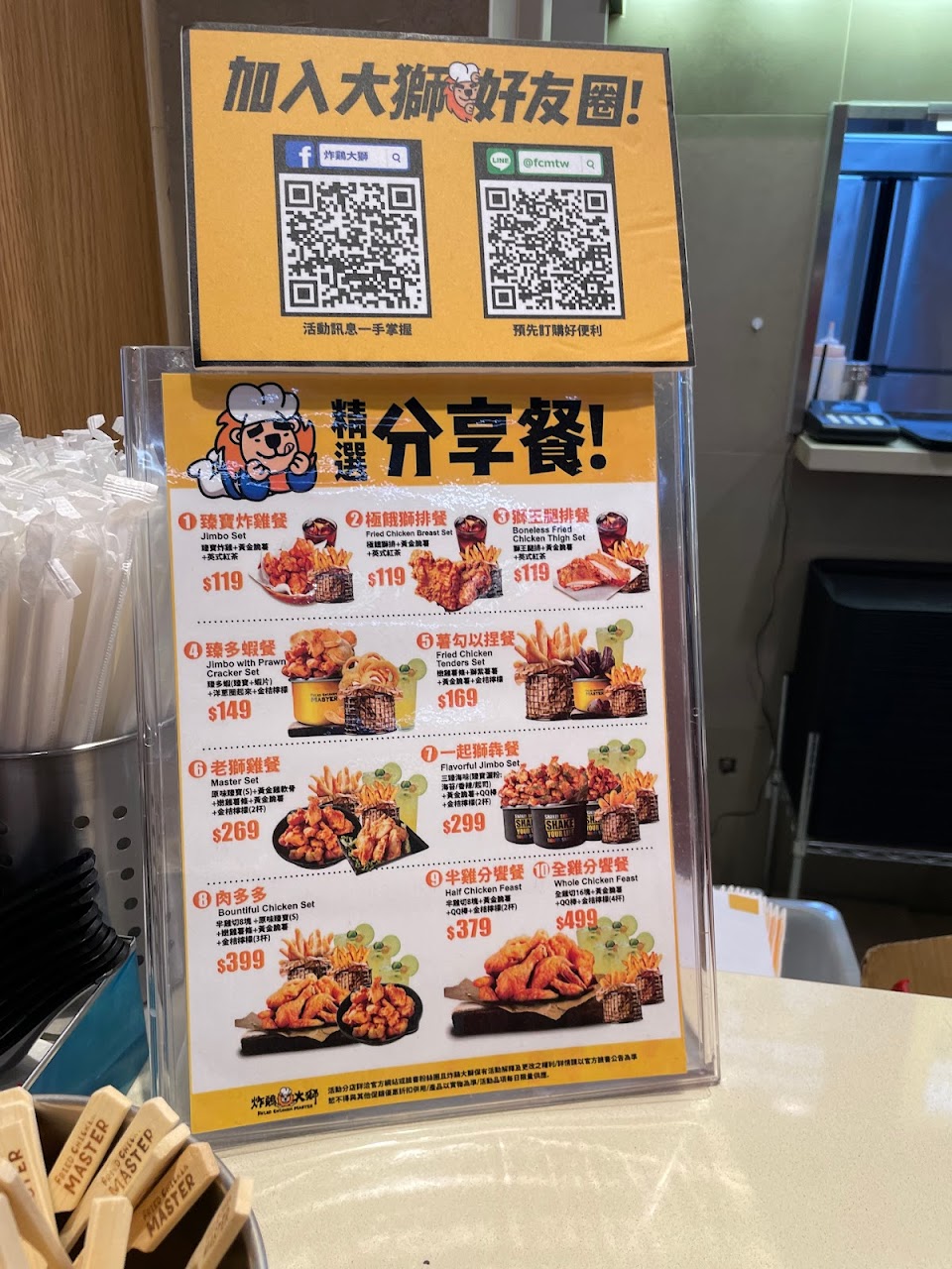 大師的炸雞 炸鷄大獅 服務 外帶 餐點類型 午餐 平均每人消費金額 $1-200