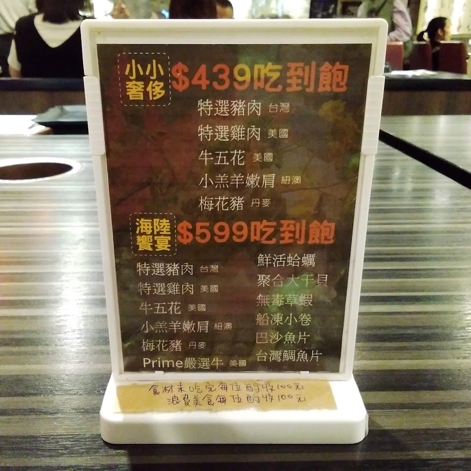 我們選擇同組客人單一價$439,豬肉、牛肉、雞肉、羊肉吃到飽,很划算,值得推~
