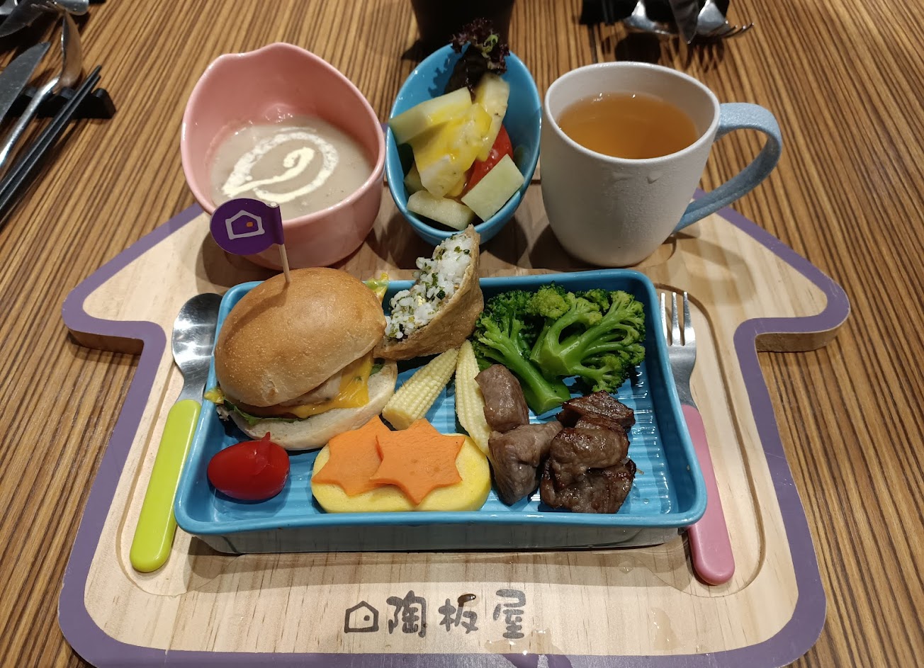 再來是兒童餐,擺盤還蠻可愛討喜的,餐點也蠻豐富,小朋友很賞臉。