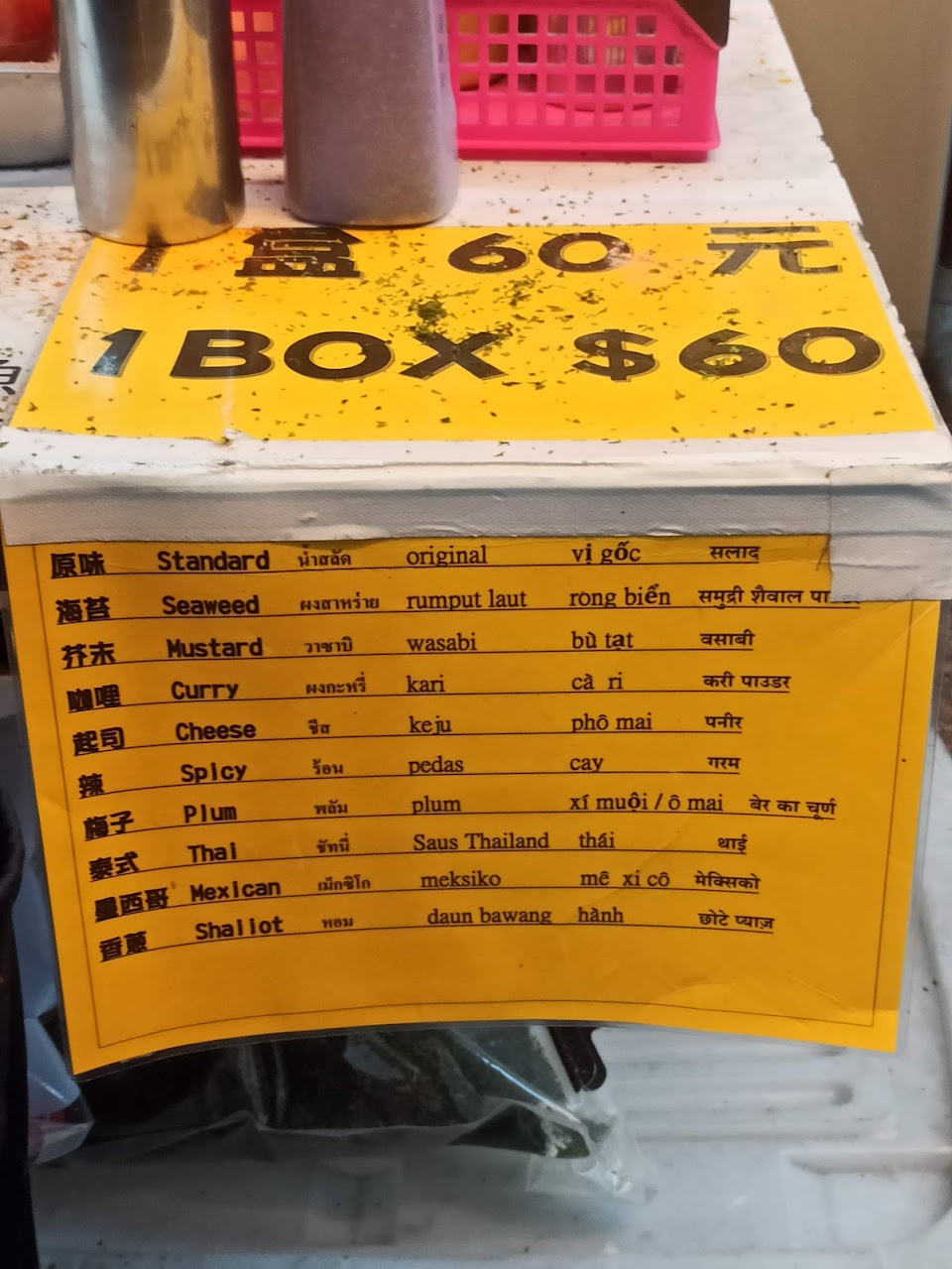 熱熱好吃,多種口味可選,還貼心有不同語言菜單說明