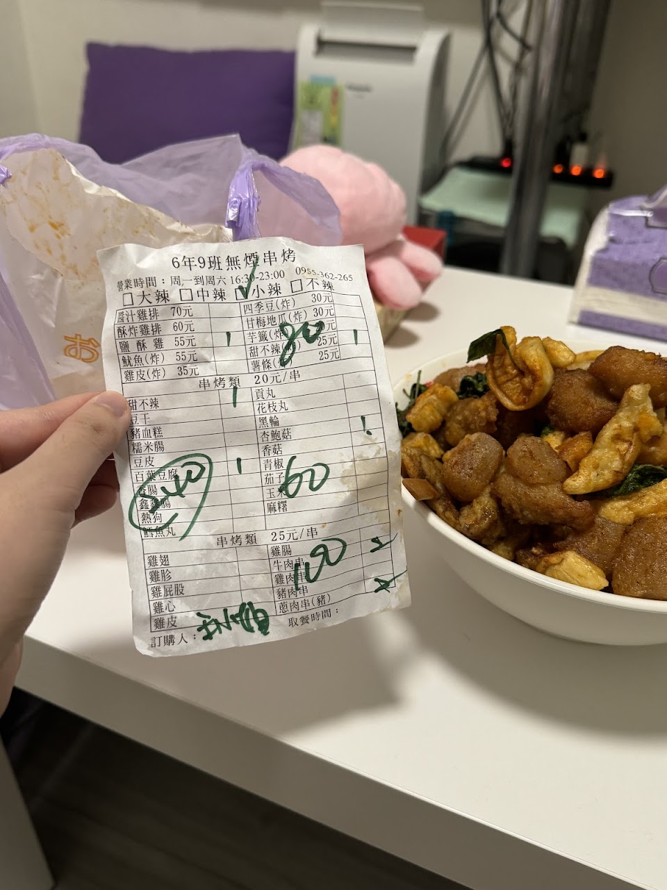 晚上19:51打電話訂餐,大約20:20去拿,老闆現場才拿這張單子起來算錢。