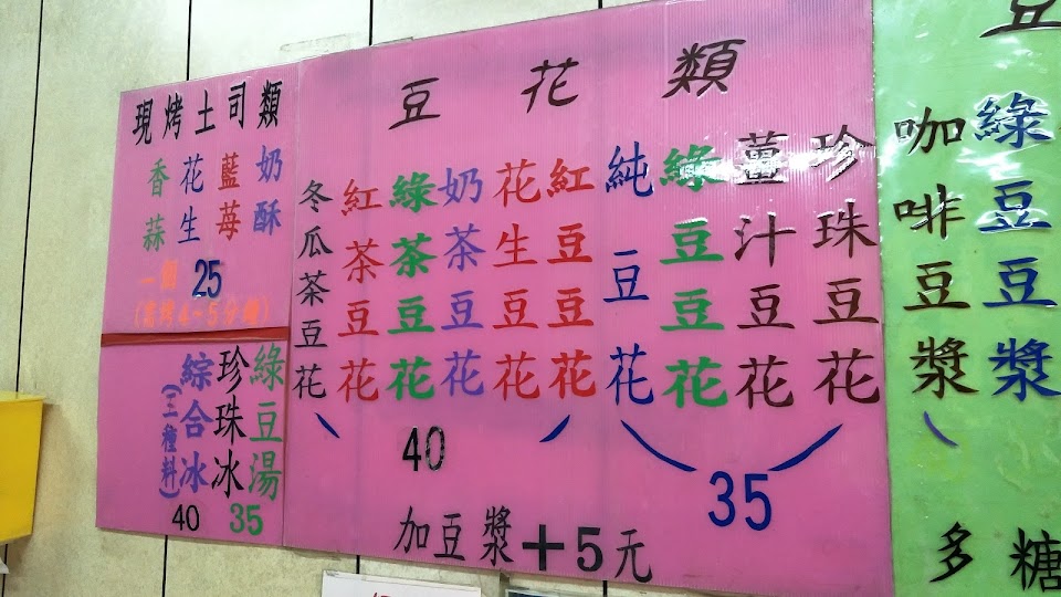 粉粿豆花很好吃,豆花可加薑汁或豆漿,口味眾多,可自由搭配。烤厚片也不錯。
