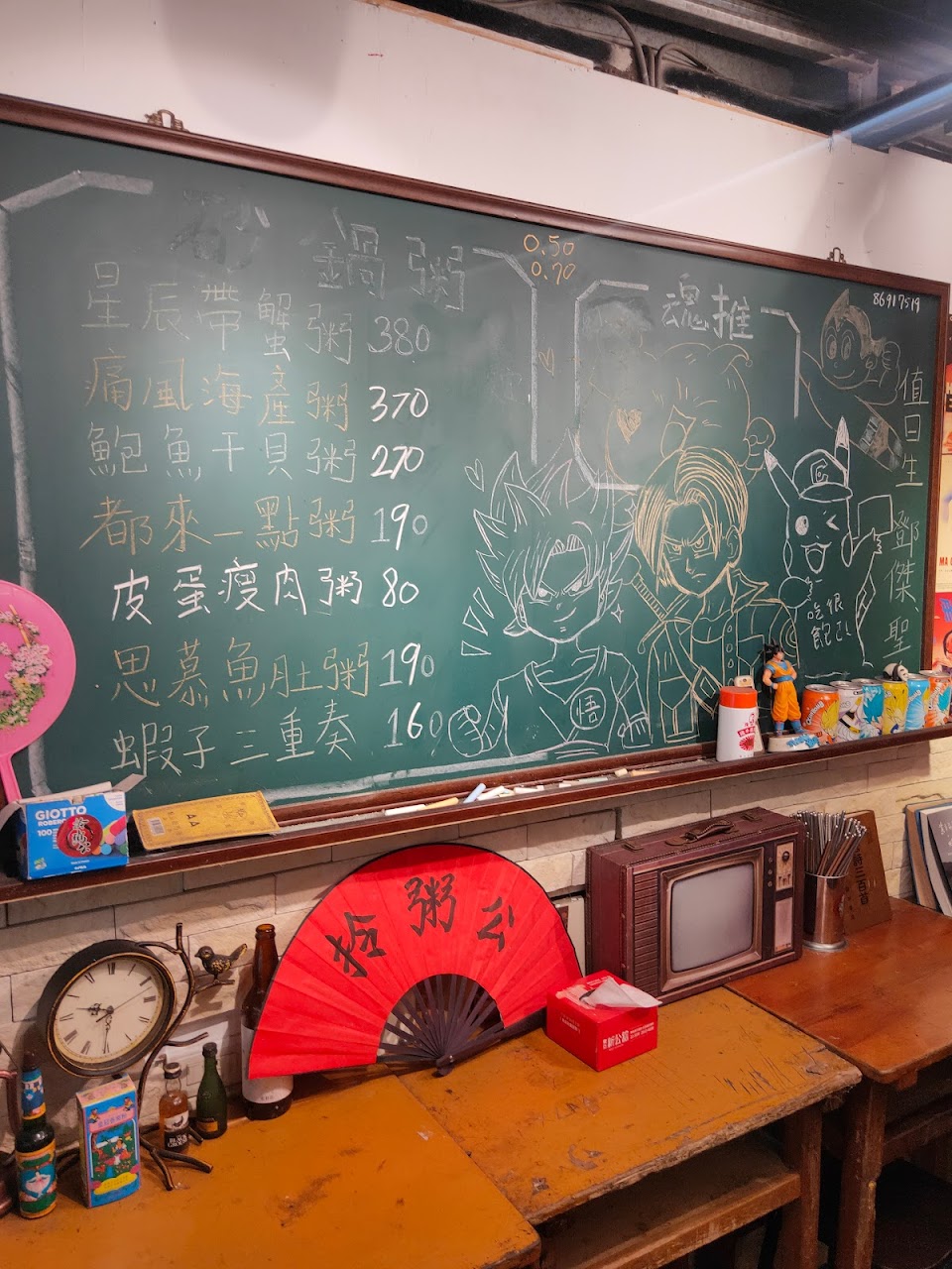 汐止夜市內,難得有這麼有趣的擺設!粥也非常入味好吃?!店內還有幽默風趣的老闆~算是下班後,轉換心情的好店~