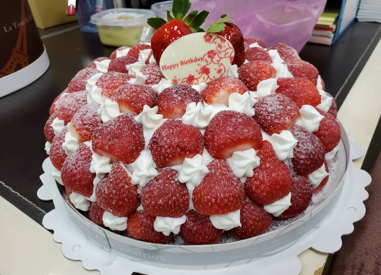 這次的母親節蛋糕很糟糕,夾層布丁都是碎布丁,外層杏仁片也都不像以往蛋糕的美觀。實在不應該因為節日趕工而降低品質。