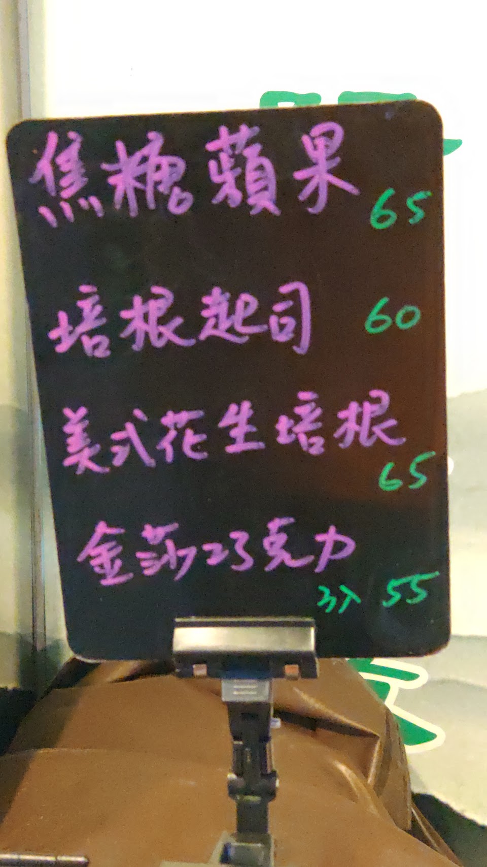 在往汐止國泰醫院的路上,偶然看到這個小推車,裡面賣了許多特色口味的雞蛋糕,從基本的巧克力、卡士達到茄汁小肉豆,還可以加價添加奶酥起司,一份五個售價五十元到六十五元。