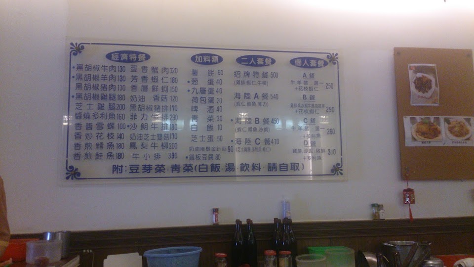 平價的餐點,食物煎的不會太鹹,所以吃起來不會口乾舌燥。但是飲料僅有紅色茶,鉄板的清潔度還好而已!