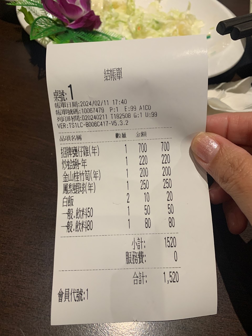 蝦球的皮很厚,很像外面炸熱狗那層皮跟我印象中的鳳梨蝦球有極大的落差,鳳梨蝦球希望可以改進,其他菜都還行