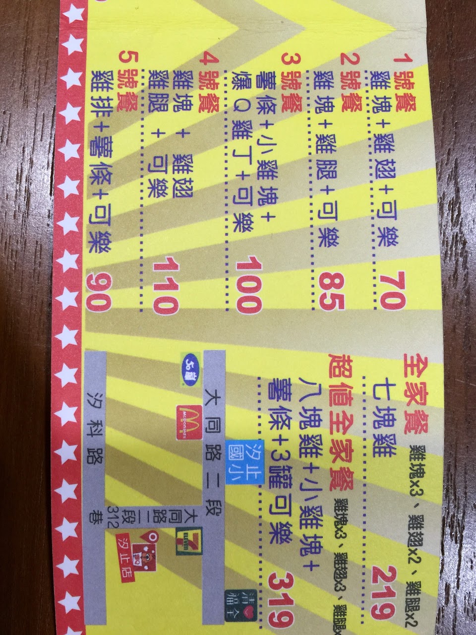 點了全腿餐,平均一塊44元,覺得很普通欸,雞腿塊偏小,也偏乾,這樣寧願會吃麥當勞肯德基或是胖老爹。