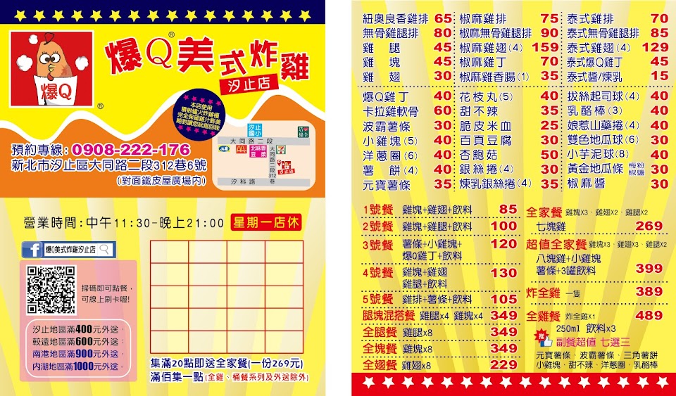 2024最新在地推薦餐廳的菜單_爆Q美式炸雞 汐止店的菜單、圖片