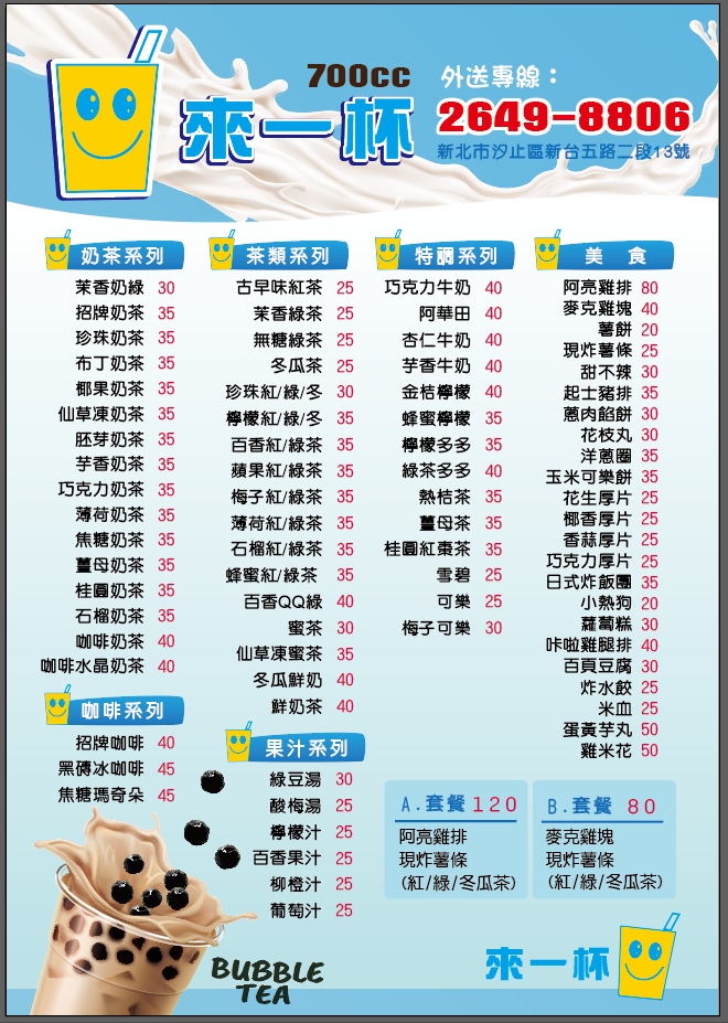 2024最新在地推薦餐廳的菜單_來一杯泡沫紅茶坊 阿亮香雞排的菜單、圖片