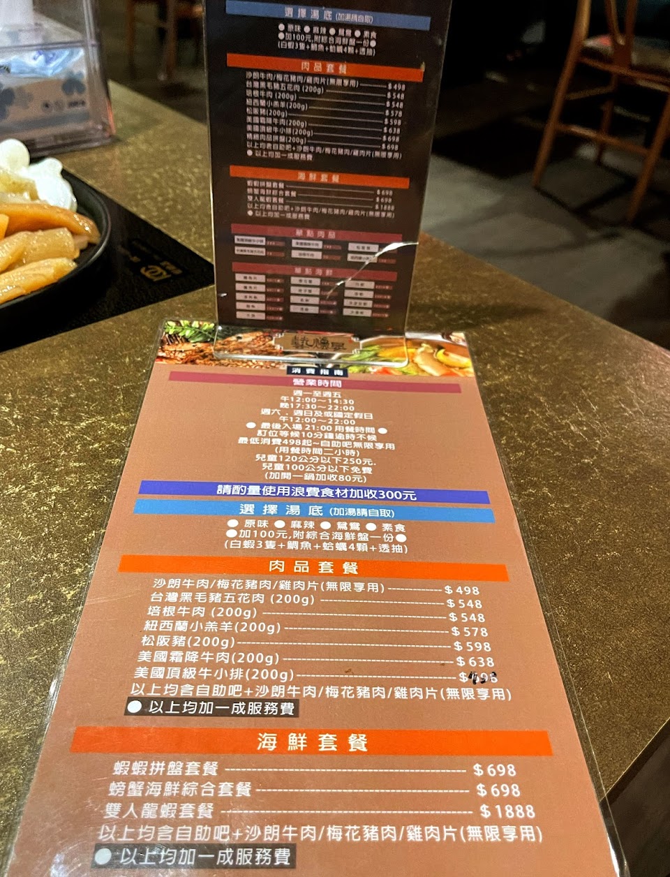 鴛鴦鍋 青菜自助吧 基本肉盤吃到飽 明果榴槤冰棒 自助火鍋料