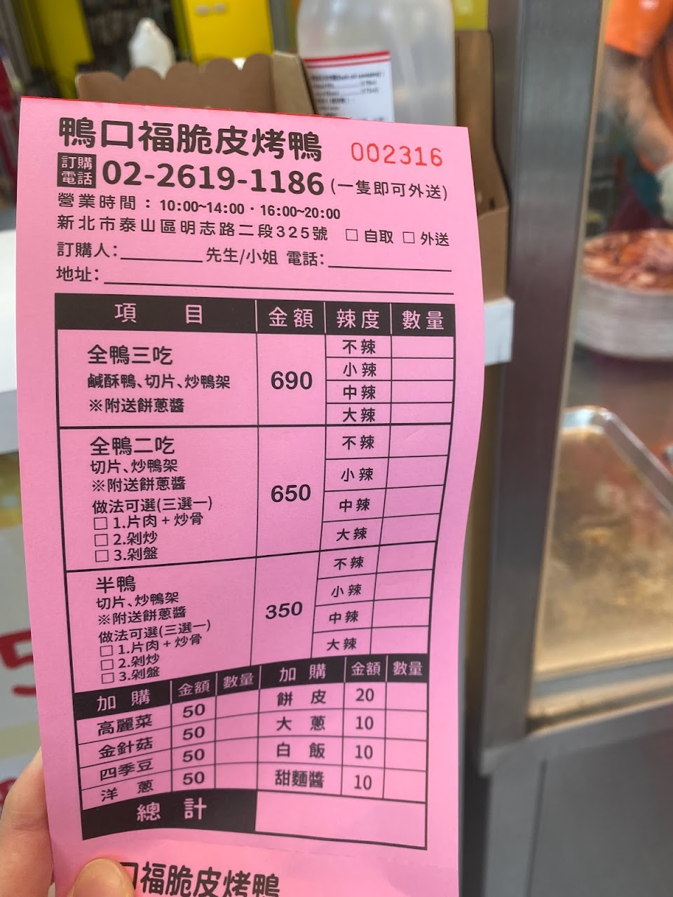打電話去預定~加了20塊錢多一份餅皮也沒給⋯真的很母湯欸😅 …