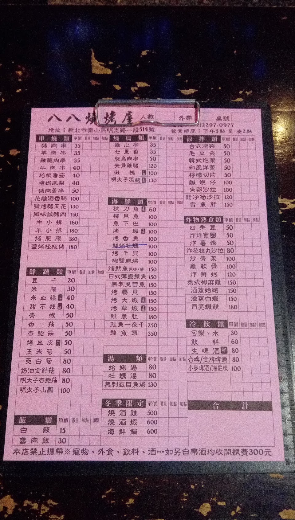 2024最新在地推薦餐廳的菜單_八八燒烤屋的菜單、圖片