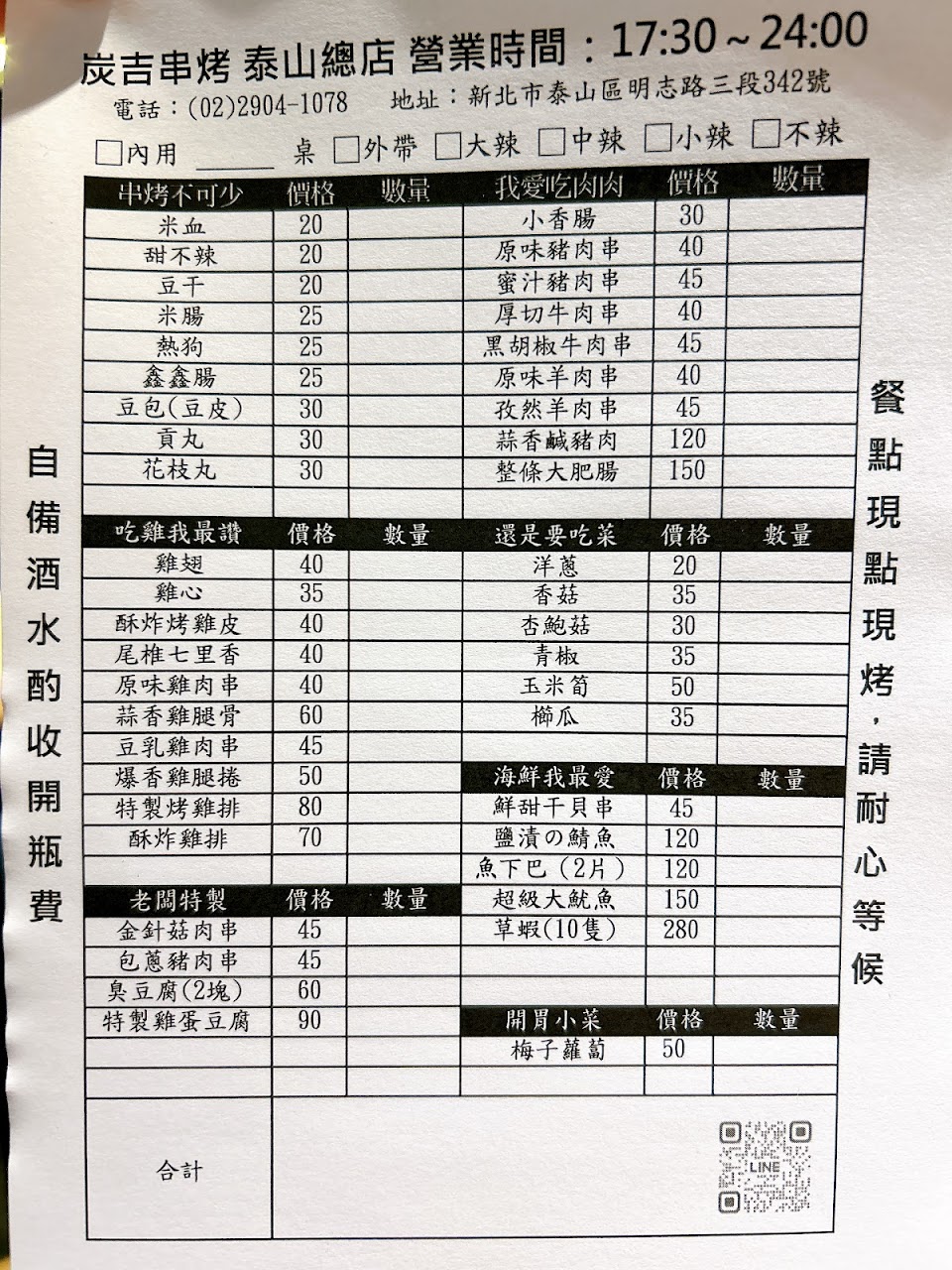 2024最新在地推薦餐廳的菜單_炭吉串烤-泰山總店的菜單、圖片