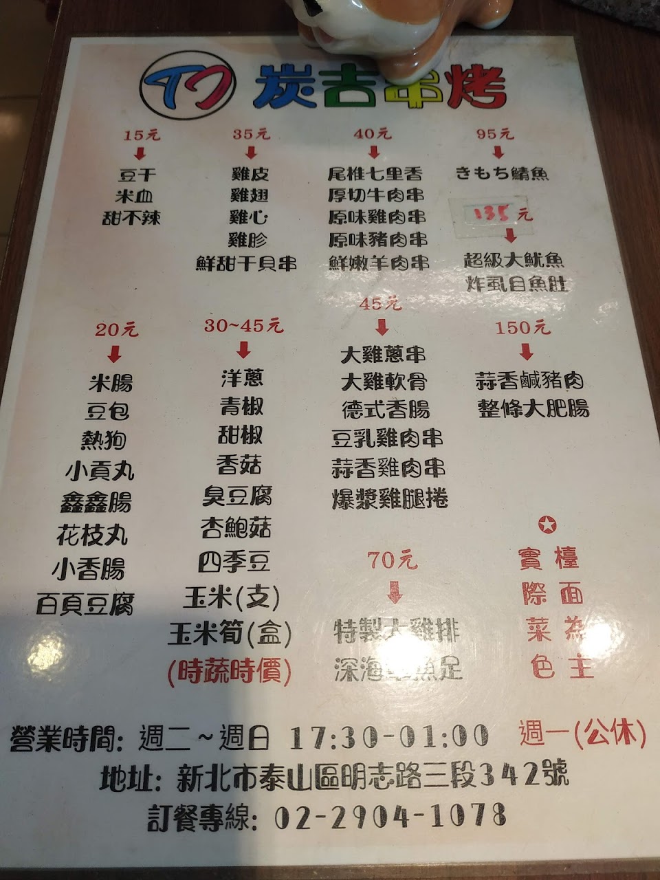 2024最新在地推薦餐廳的菜單_炭吉串烤-泰山總店的菜單、圖片