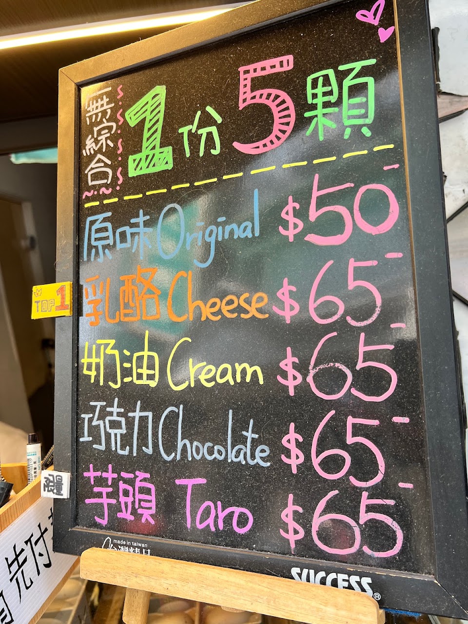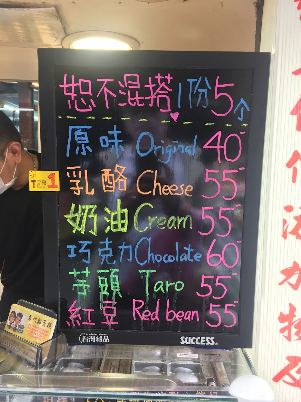 The store is a stand in Dongmen Market, but easy to find since is it near one of the big roads. I personally don’t like salty cakes, but the boss recommends the cheese flavor and for me the best is the custard. Even though the price is a bit high (70nt/5 cakes) the boss makes everything to order for the best quality. They use a creative packaging which is a paper bag with holes to allow the air to flow out, keeping the cakes crispy.