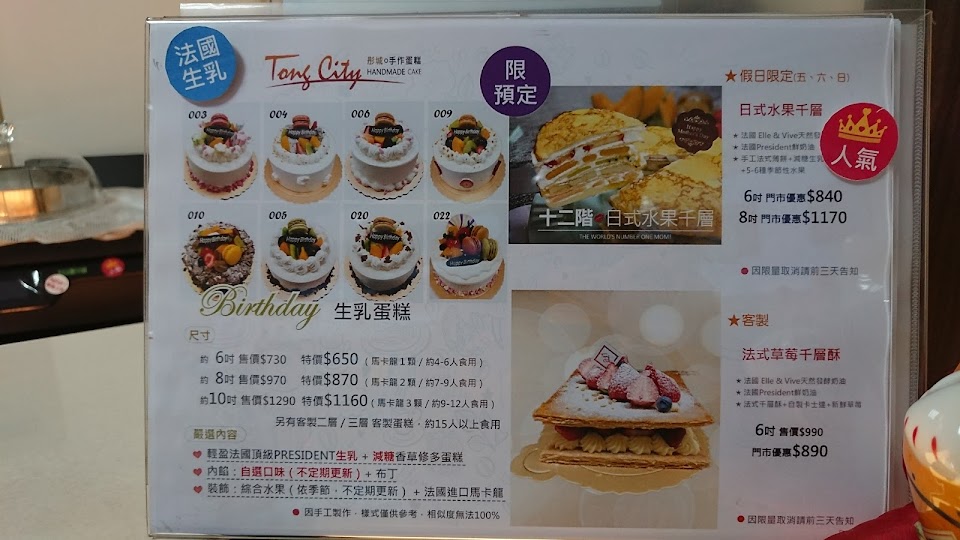 2024最新在地推薦餐廳的菜單_彤城。手作蛋糕 Tong City(甜點、生日蛋糕、彌月、伴手禮)的菜單、圖片