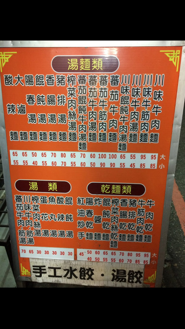 他們的牛肉麵有川味及番茄二種,為二種不相同的口味,也有牛肉及牛筋可以選擇,完全可依個人的喜好來點餐,而酸辣湯更是一絕,是由料多味美的大滷湯,加入辣椒醬和醋與胡椒,所以有關辣度及酸度完全依個人的口味來調整,或是由老闆調配,都是一道傳頌淡大的湯品,全店中的榨菜肉絲麵也是一絕,整個大骨湯底,佐以精緻料理榨菜,簡直是一級棒的美味,而香噴噴的煎豬排和Q彈的餛飩更是美味鮮甜.