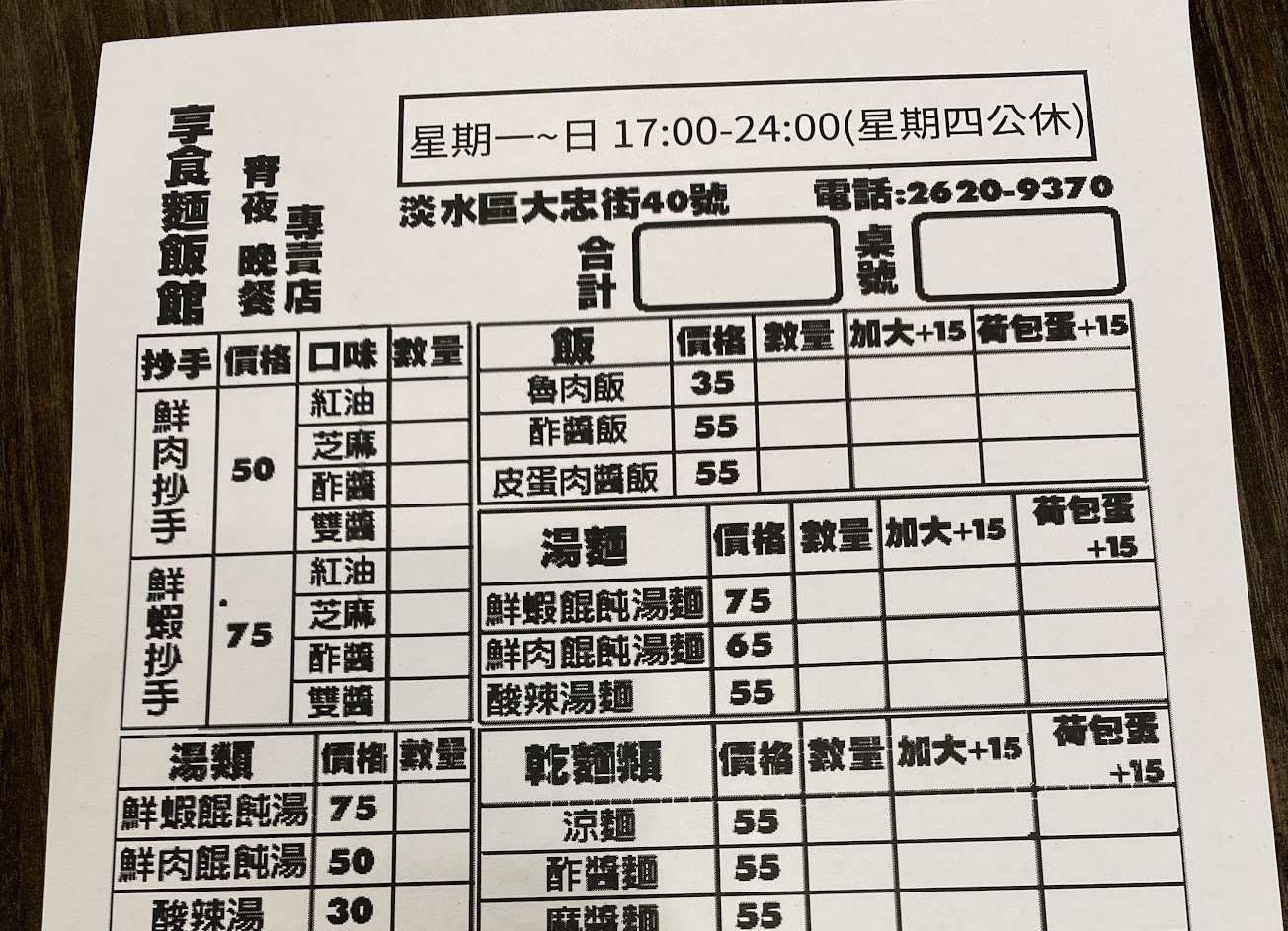 有賣皮蛋肉醬麵,比較特別。鮮肉餛飩大顆好吃,泡菜微辣也很不錯。有和外送app合作,下午5點營業到晚上12點,是宵夜的好選擇!