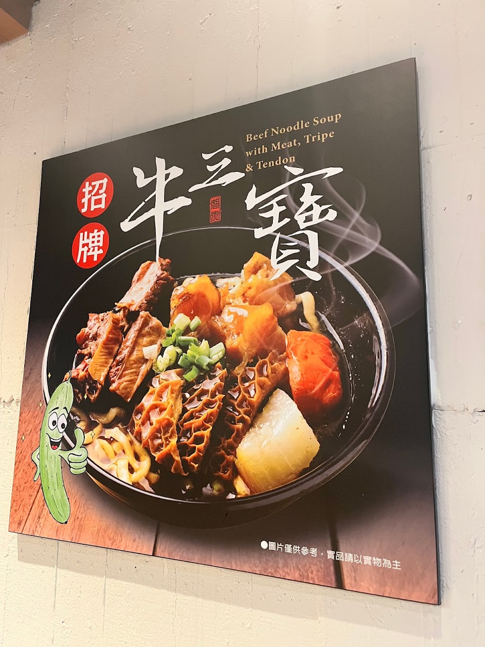 有一天我朋友叫孝益跟我說這家店很好笑放小黃瓜圖案 吃姐夫的小黃瓜 後面他告訴我這小黃瓜?確實好吃 但我來吃了牛魔王 跟牛三寶 湯頭屬於中藥味 蠻不錯的 推薦小黃瓜跟牛肉麵 想知道多好吃請自己來光顧
