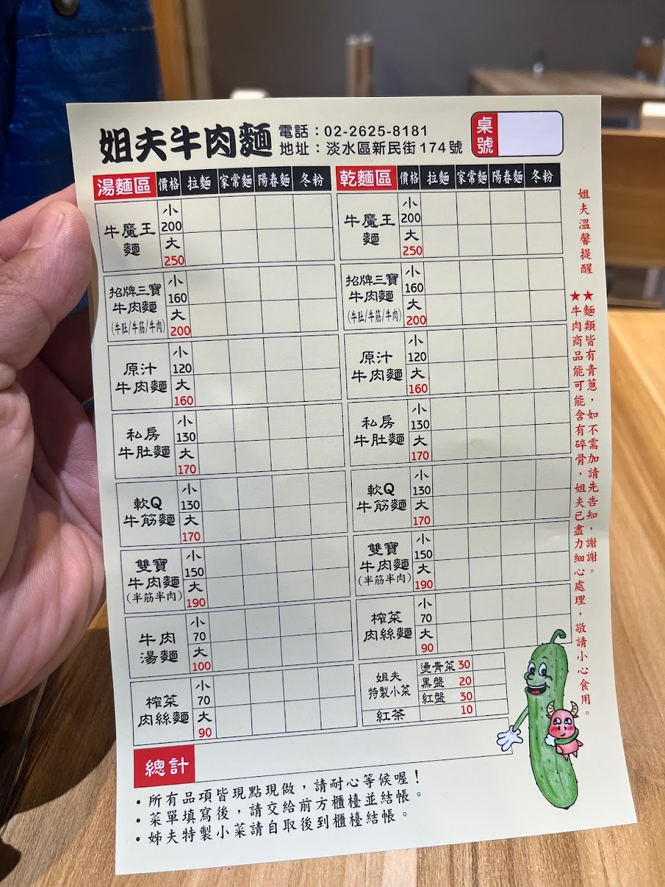 2024最新在地推薦餐廳的菜單_姐夫牛肉麵的菜單、圖片