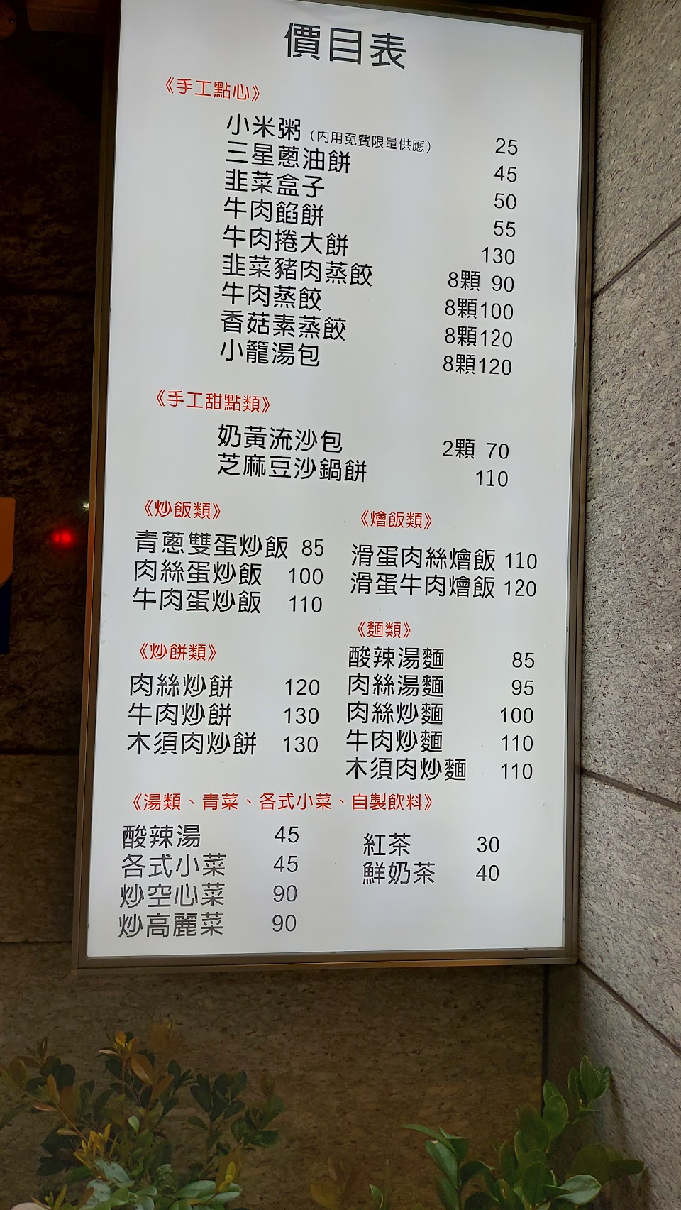 牛肉捲餅、韭菜盒子不油膩、芝麻豆沙鍋餅、奶黃流沙包熱熱、炒飯、小籠包,以上都好吃?⋯⋯