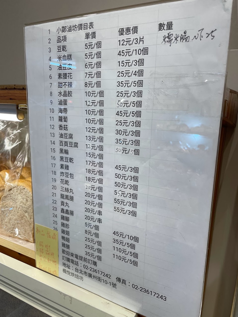 – 麵包種類豐富,價格公道,沒話說的便宜 – 店內還有賣滷味跟一些甜點