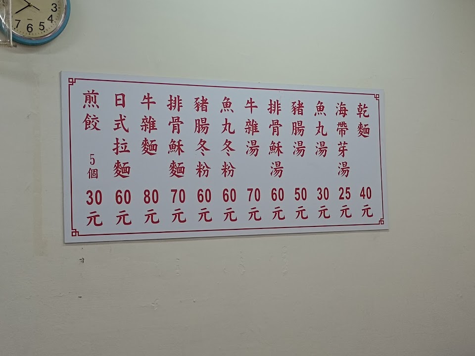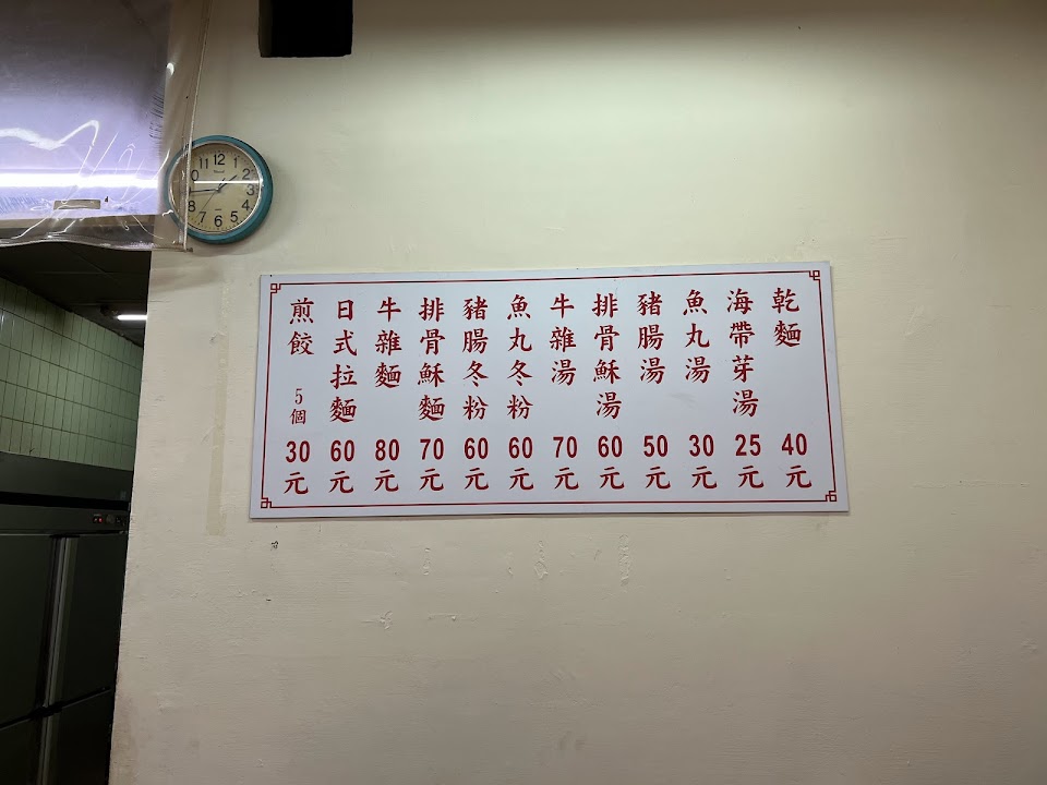 小店一間,煎餃小小一顆但滋味很不錯,但餡料偏少,拉麵純的台拉,60元算相當便宜?