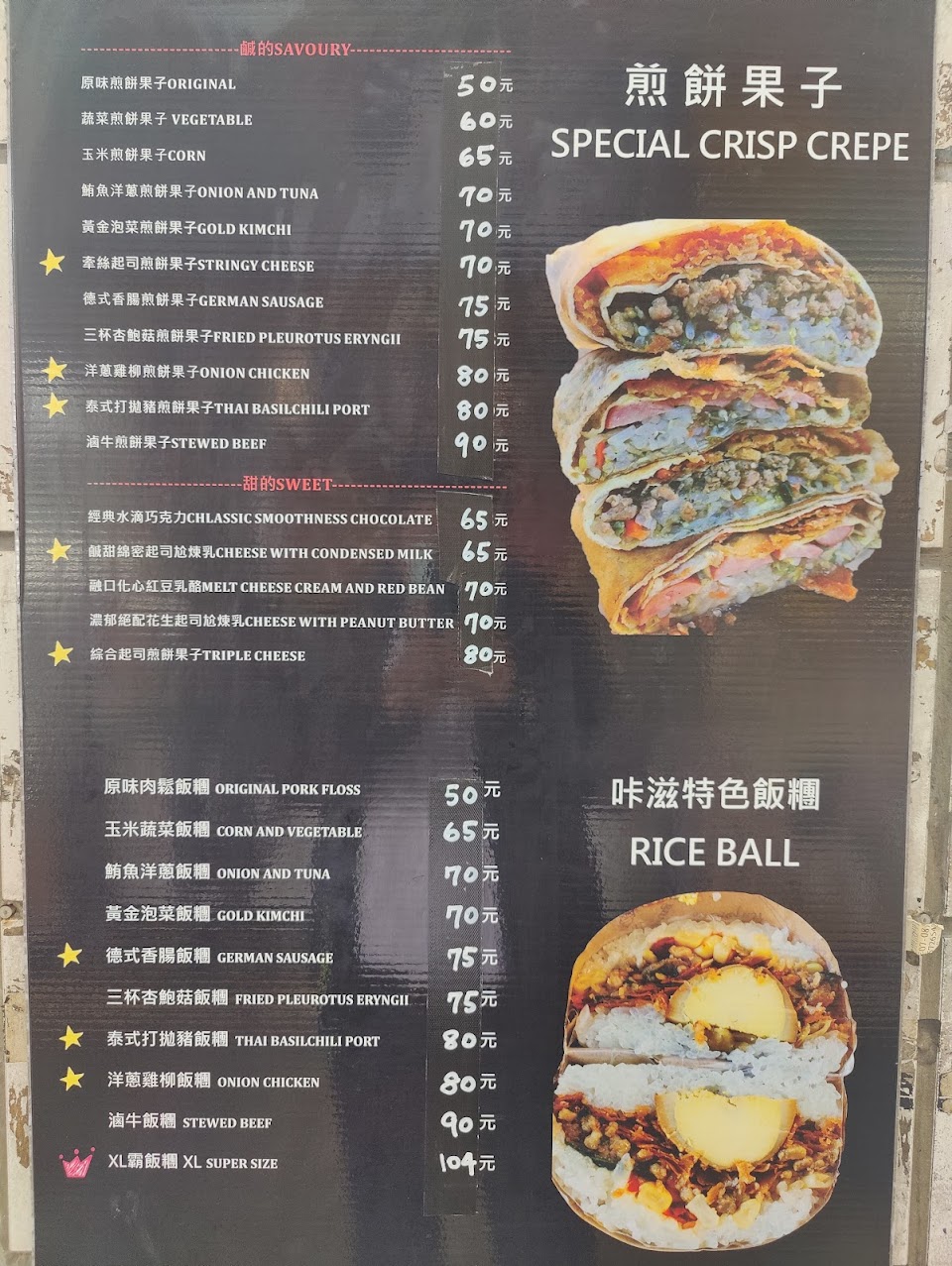 -北車附近好吃煎餅果子!都是現點現做會需要稍稍排隊一下下但製作速度算快~不會等太久! -口味有鹹有甜!最推起司口味!裡面吃起來卡滋卡滋的口感就是煎餅果子的靈魂? -飯糰份量大~可以吃飽飽! …