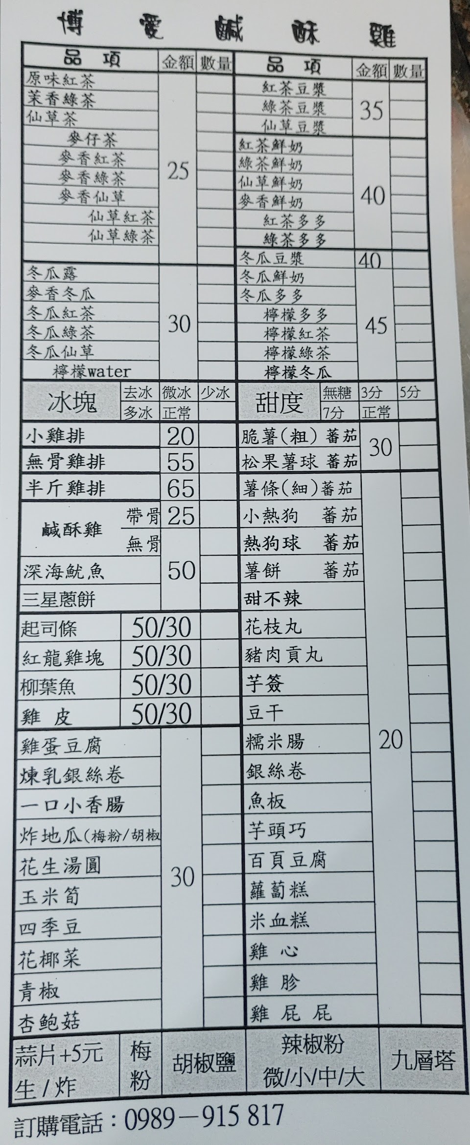 2024最新在地推薦餐廳的菜單_博愛鹽酥雞的菜單、圖片