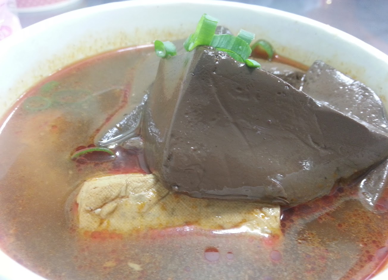 淡江大學附近的名店了。因為是非用餐時間,點了碗臭豆腐+鴨血。說實話,蠻普通的。
