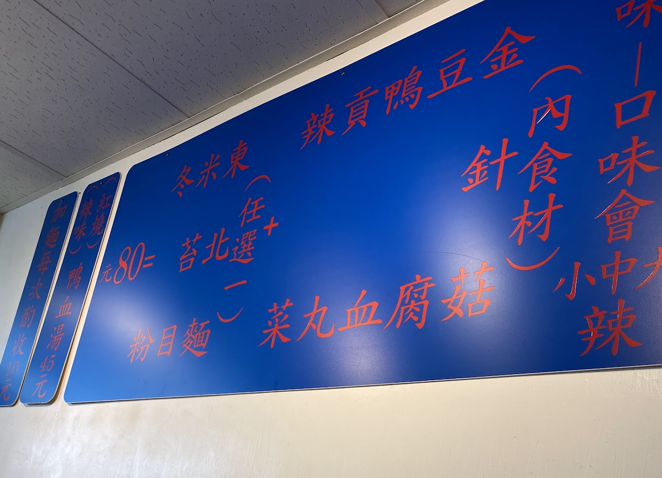 湯頭、鴨血跟豆腐非常優秀! 當天吃了山東麵跟像粉條的麵,味道濃郁又好吃,可以加湯。 美中不足是店員會因忙碌忘記微笑,第一次去點餐有點不知道跟誰點。但整體環境舒適、乾淨。