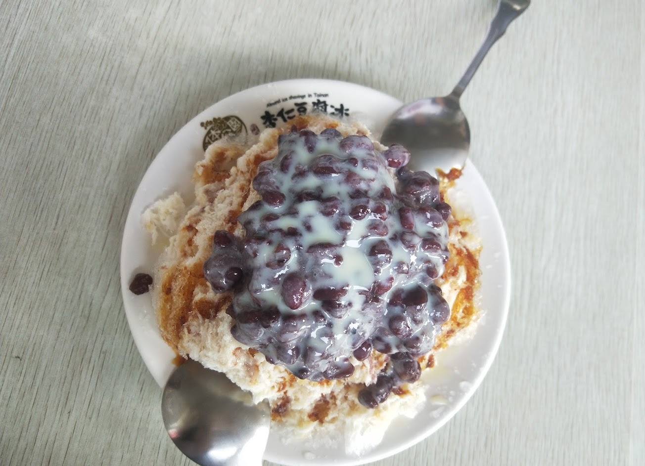 蜜紅豆煮的味道相當好,甜又不會太膩,而且給很多,再淋上煉乳搭配杏仁豆腐一起吃