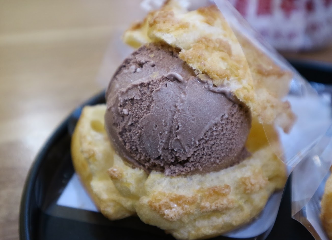 冰淇淋泡芙,好吃,可惜店內的招牌,擋住看向店外的風景