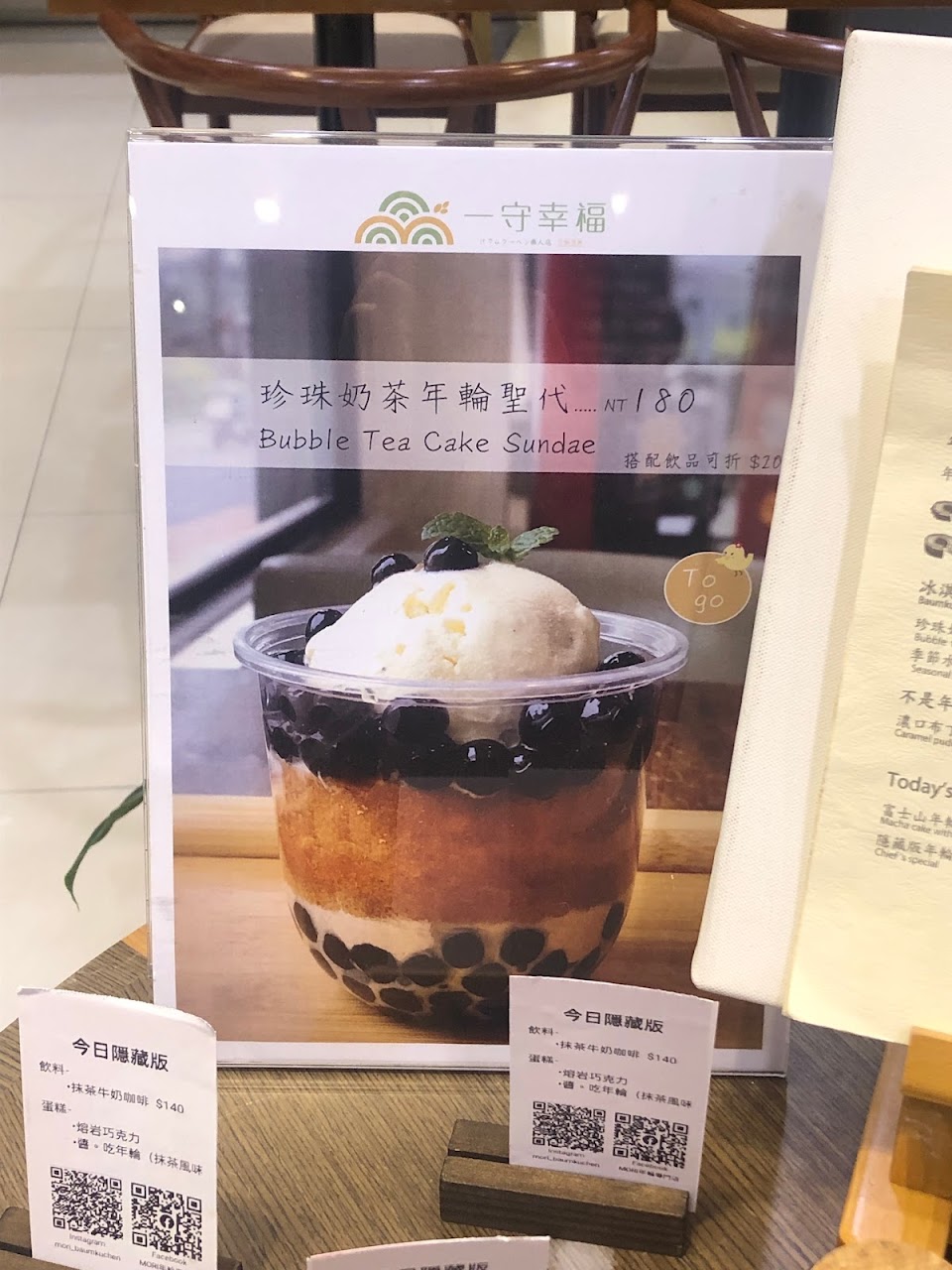 有五種口味年輪蛋糕,原味,抹茶,巧克力,巧克力糖霜,原味糖霜,有6吋4吋和小尺寸!因為下午五點多到,買了3個小尺寸試吃看看,超過下午茶時段,勉強讓我們在前面桌椅上內用,原味吃起來很乾,巧克力糖霜和原味糖霜很甜很會掉糖粉,沒配水或飲料吃很膩!一個$100太貴,中看不中吃!因為有人推薦才去買的,比起來還是古早味蛋糕好吃又便宜,CP值高多了!