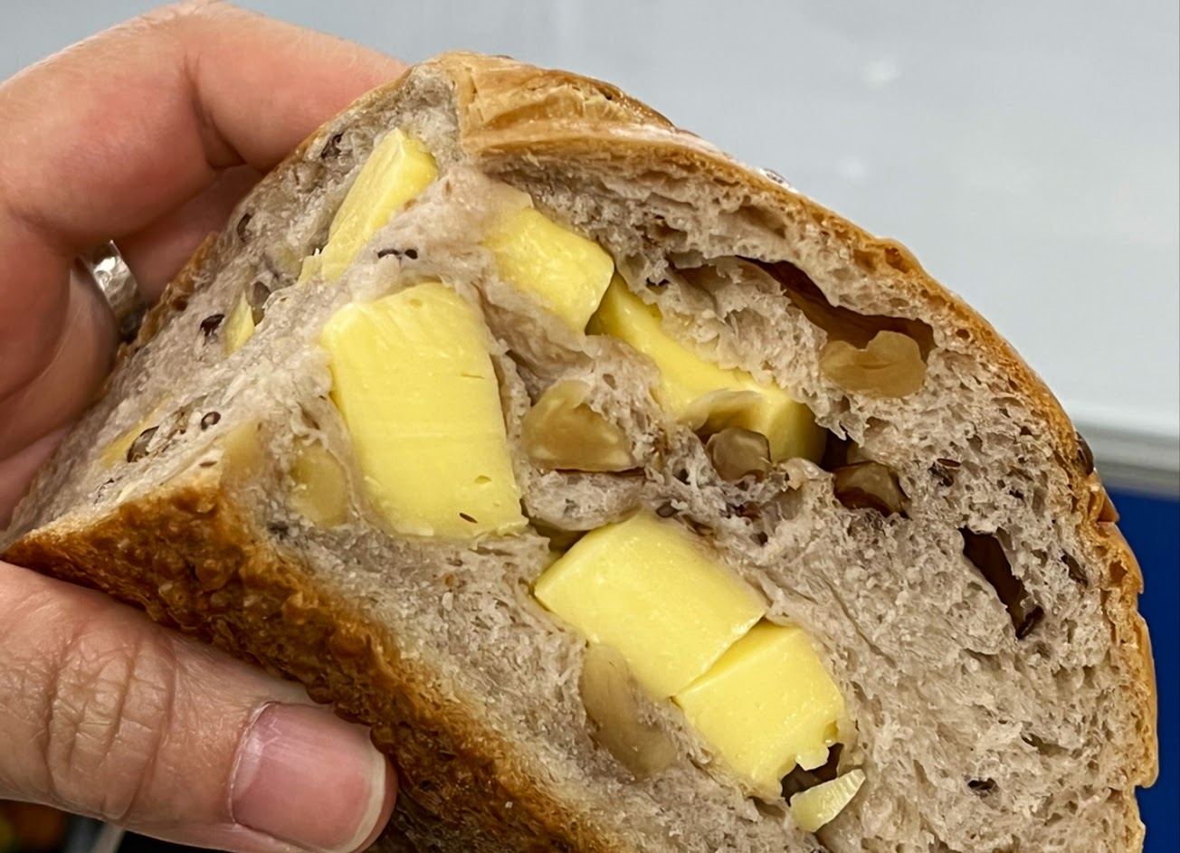 Although not freshly baked, taste ok. Not too sweet like others around. Lot of variety. The one with cheese and nuts has lot of cheese crumbs inside. One sixth of it already enough for breakfast.