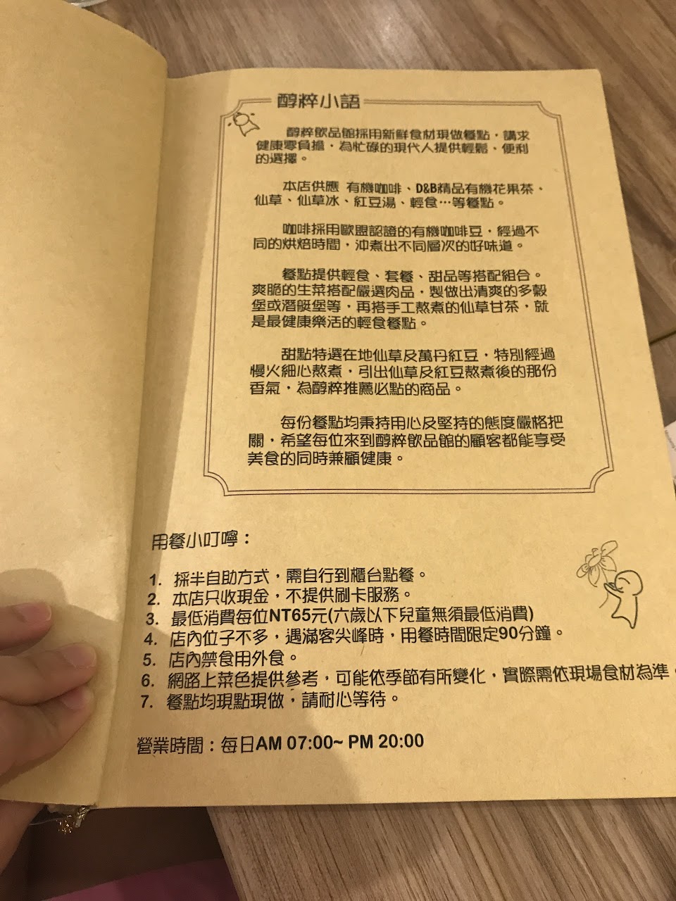 裝潢布置有點雜亂、價格普通餐點清晰簡單11樣。飲料卻過多樣