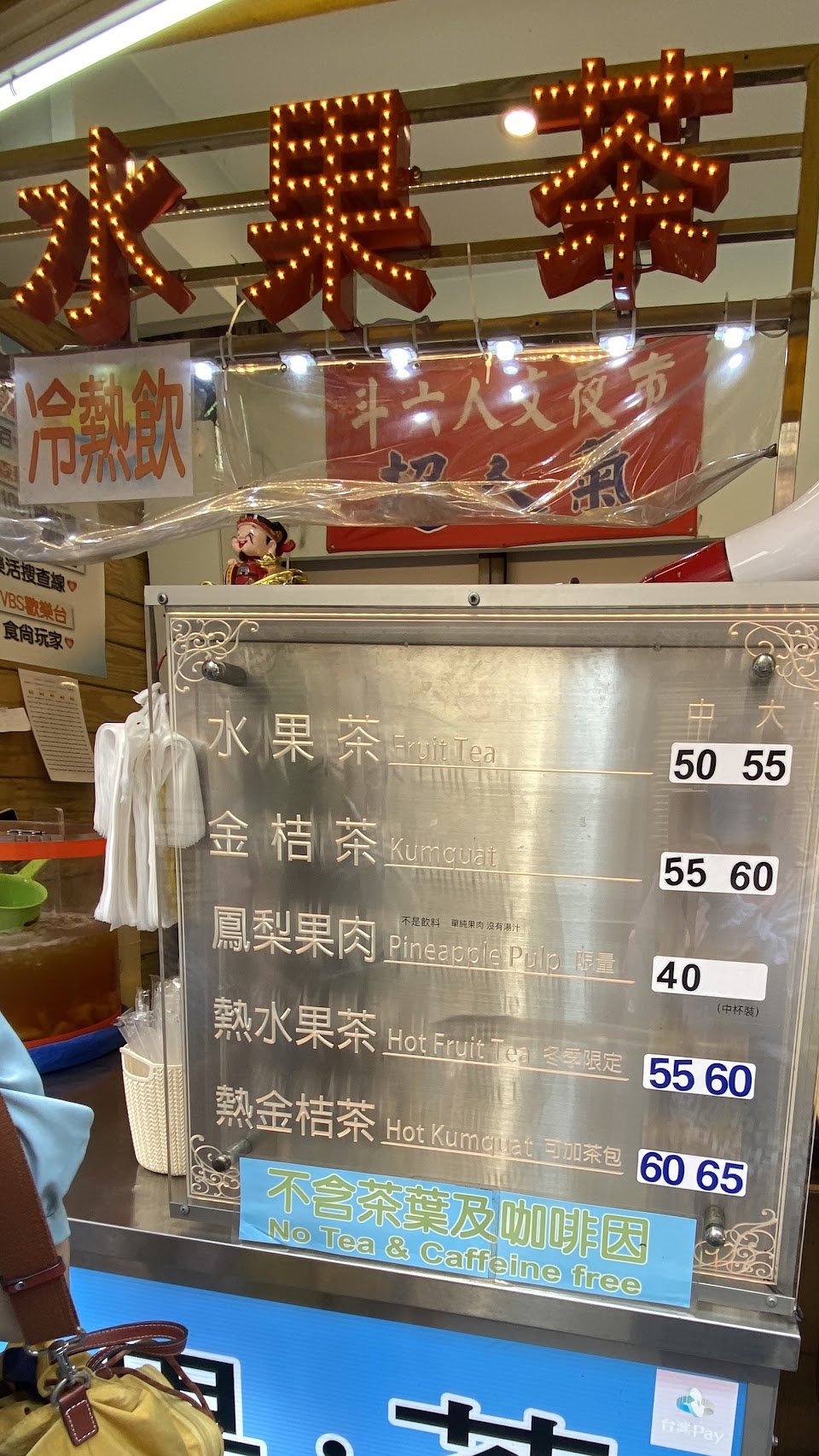 看到一鍋鍋在熬煮的鳳梨,買了一杯熱水果茶$55,較冰飲貴上$5因為多了柳橙汁,但實際喝起來沒有甚麼差別。