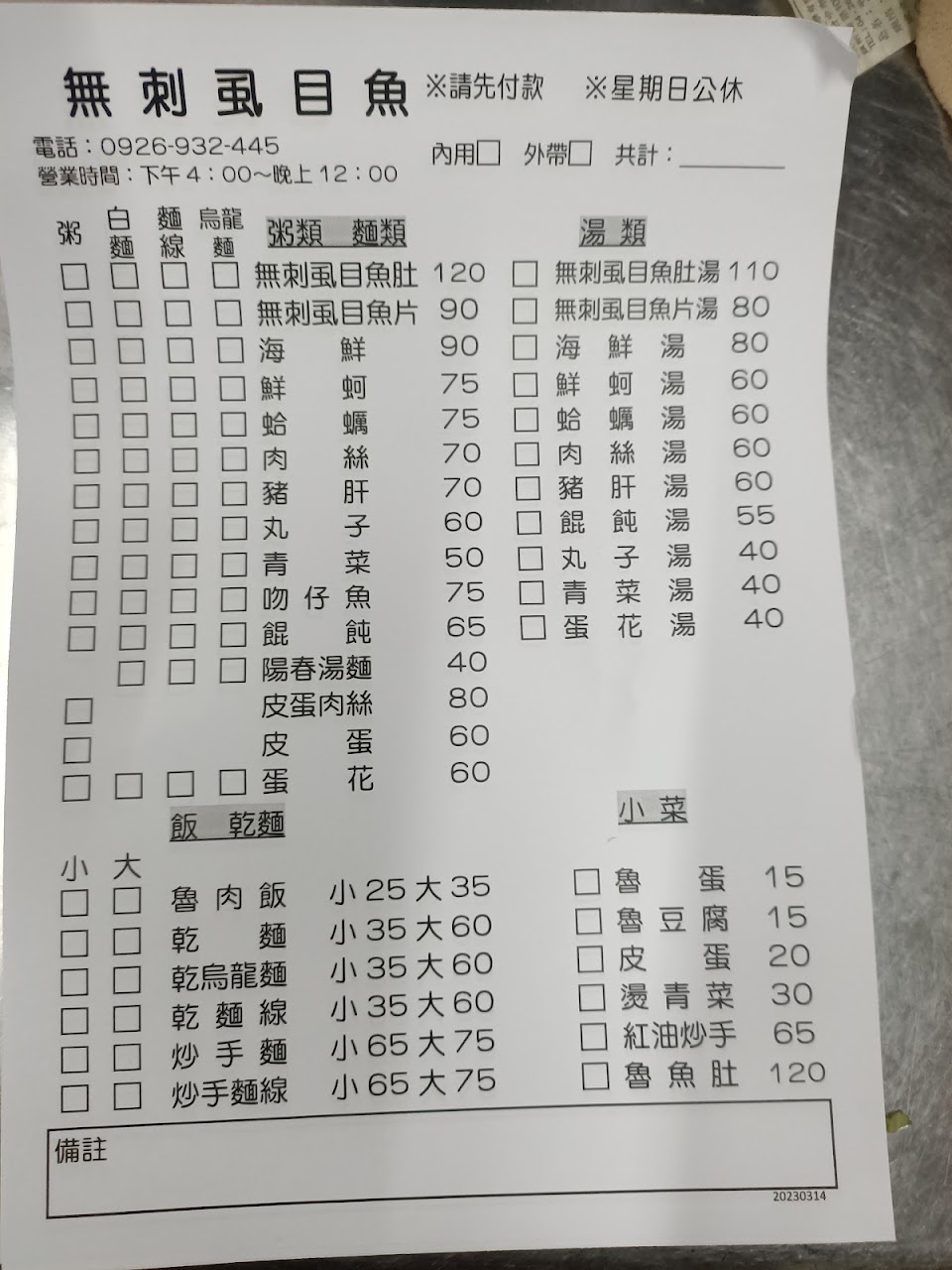 2024最新在地推薦餐廳的菜單_北新無刺虱目魚肚粥的菜單、圖片