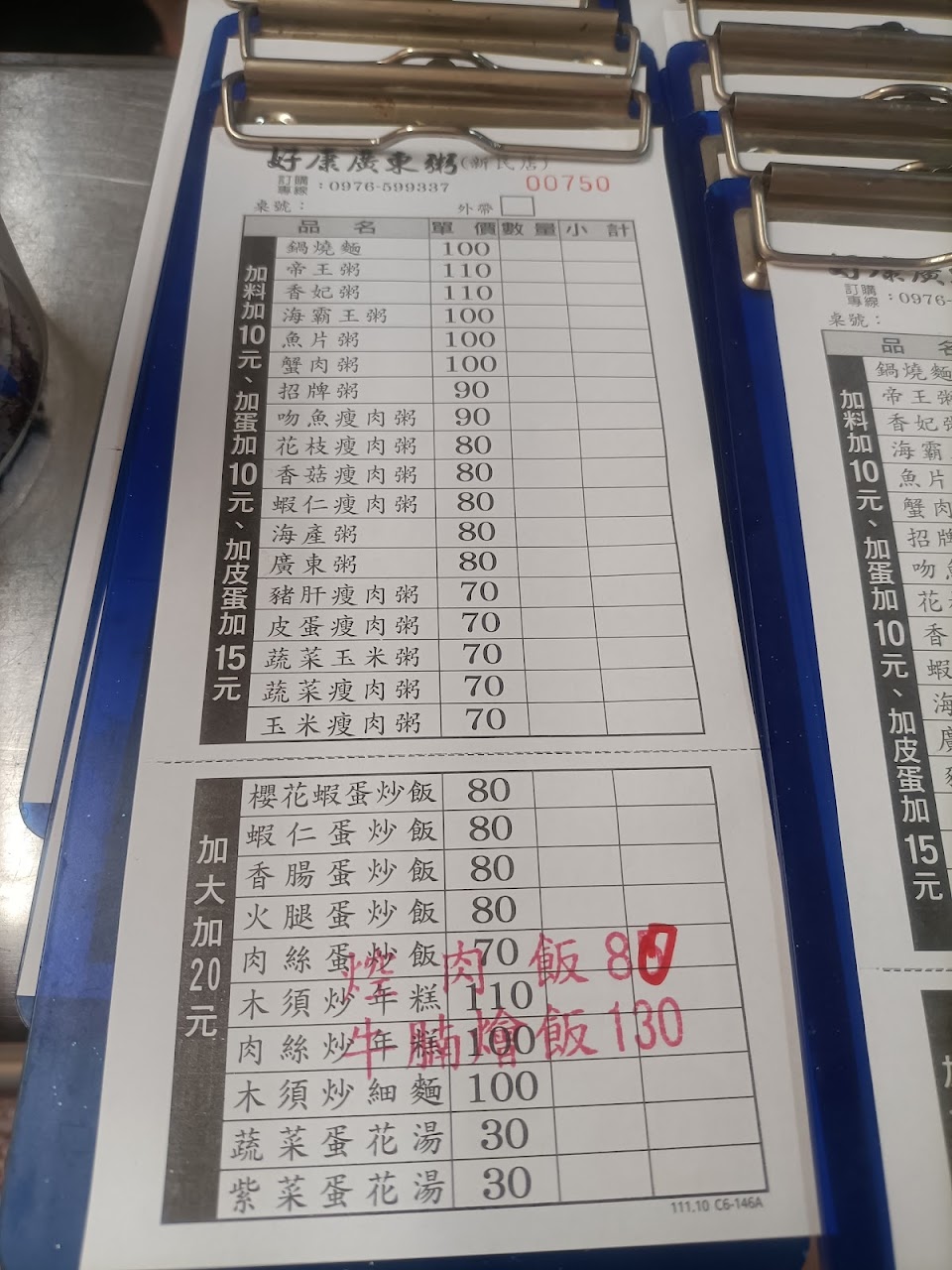 2024最新在地推薦餐廳的菜單_好康廣東粥的菜單、圖片
