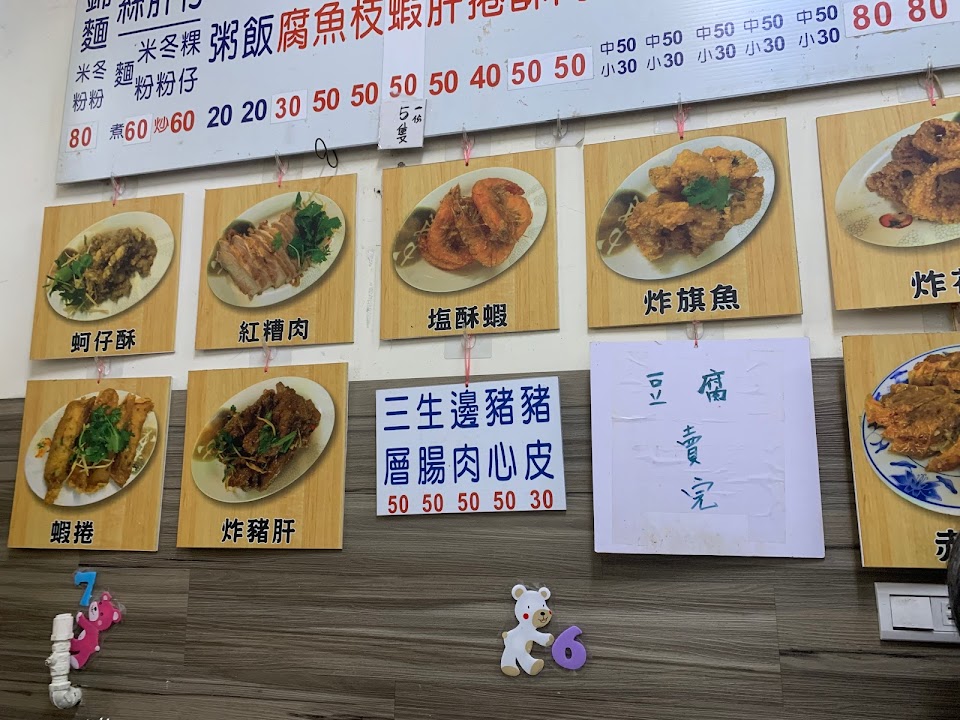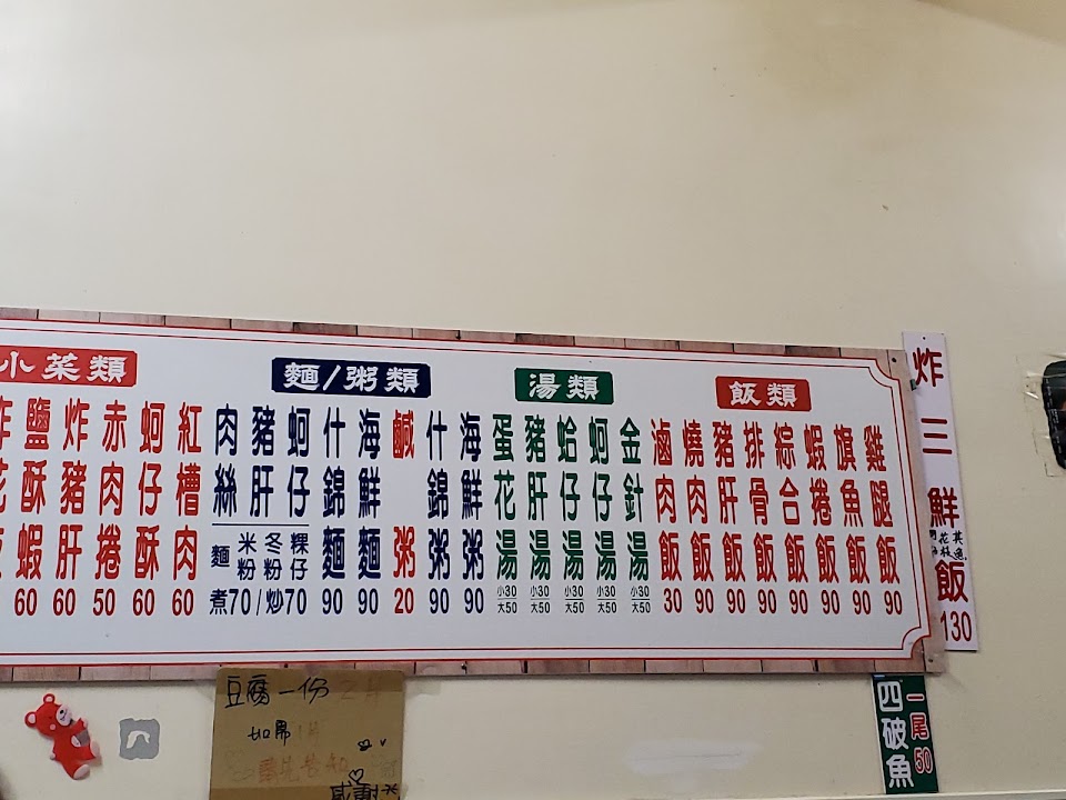 什錦麵和鹹粥吃起來很清淡,用料新鮮,配著炸物感覺是還蠻不錯的。旗魚湯的湯頭很鮮,肉質有嚼勁。炸物部分,新鮮之餘、調味也恰到好處,點了炸豆腐、蚵仔、蝦和豬肝都非常美味,只有炸肉卷覺得普通;白切豬心,川燙的軟硬適中,相當不錯。