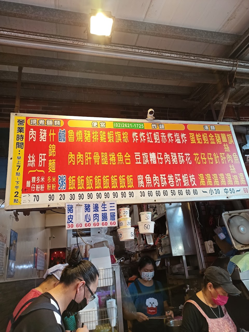 位於淡水市場內,從中山路129巷巷口進去,店家位於右側。主要販售鹹粥、什錦麵、炸物和黑白切,還有提供便當的快餐服務。外帶與內用的排隊隊伍很亂,加上店家生意很忙,動線上會讓人搞不清楚。