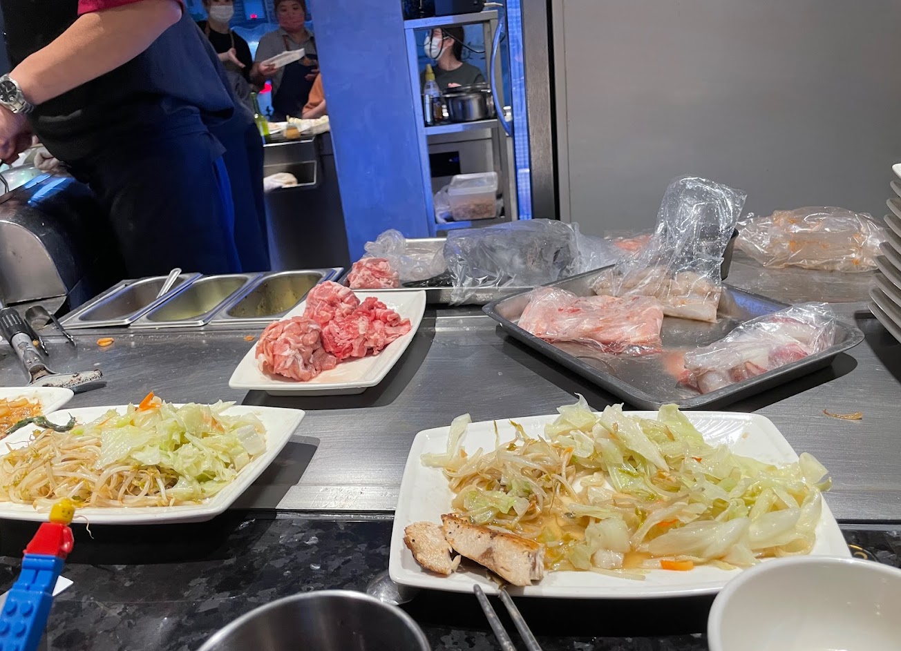鐵板燒鏟「粗魯」的掃掉我前方的菜盤。這些行為