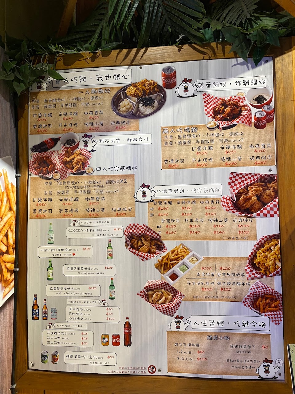有自助點餐機很棒(我最討厭跟陌生人說話XD 看到自助點餐機都會超級開心的)看評價來的,點過原味炸雞跟蒜味炸雞還有年糕跟飯糰都很好吃~骨頭是真的蠻紅的啦,不過吃起來真的是熟的。帶回家有點涼掉、吃不完隔天重新微波的狀態都還是蠻好吃的。兩個人點單人套餐再加年糕就吃得蠻飽的,可能我運氣好,買的時候前面都沒人所以速度蠻快的。